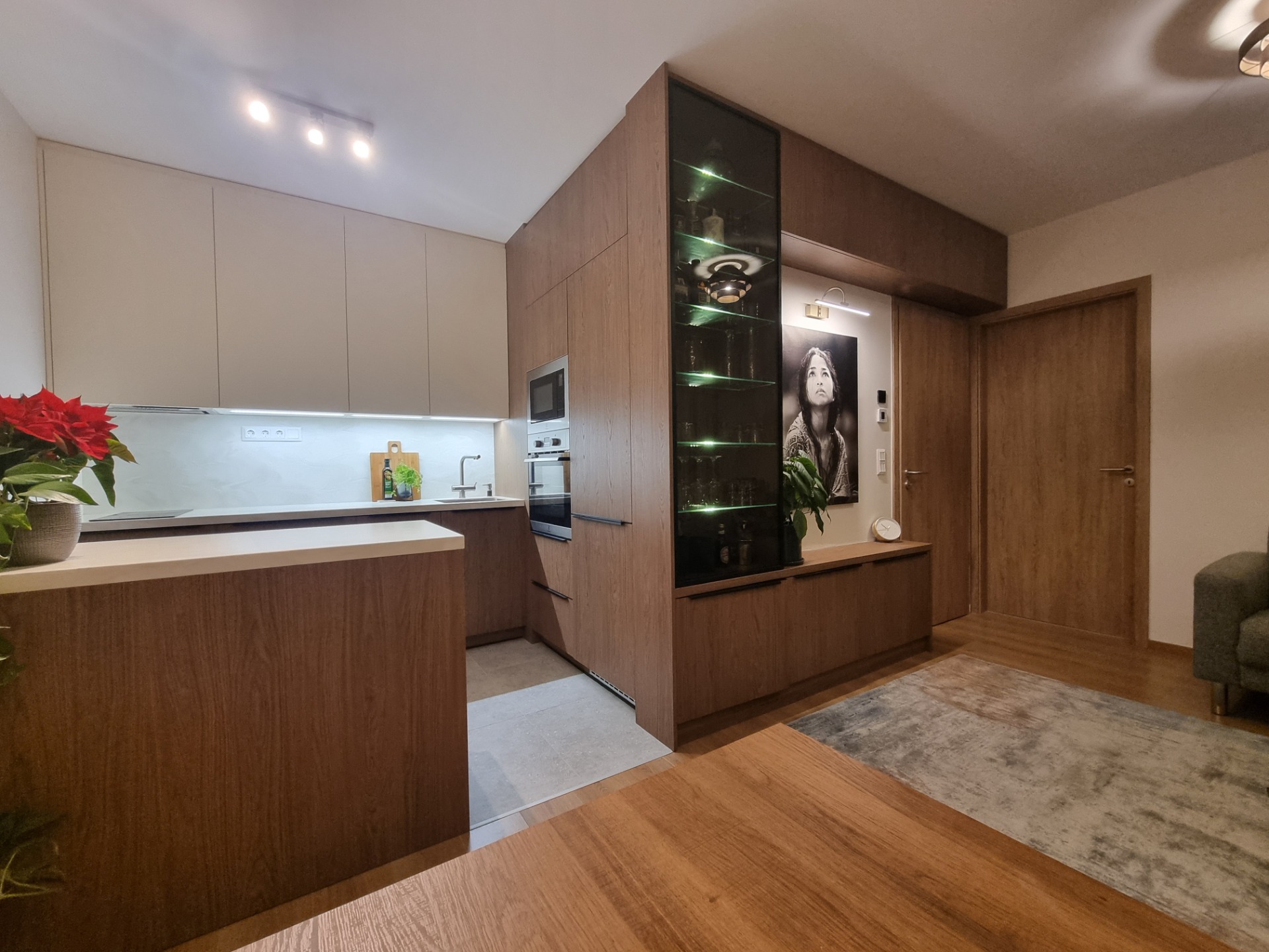 Új építésű, 65 nm-es lakás belsőépítészeti átalakítása és dekorálása. Konyha és nappali szekrény, illetve új fürdőszoba került kialakításra.